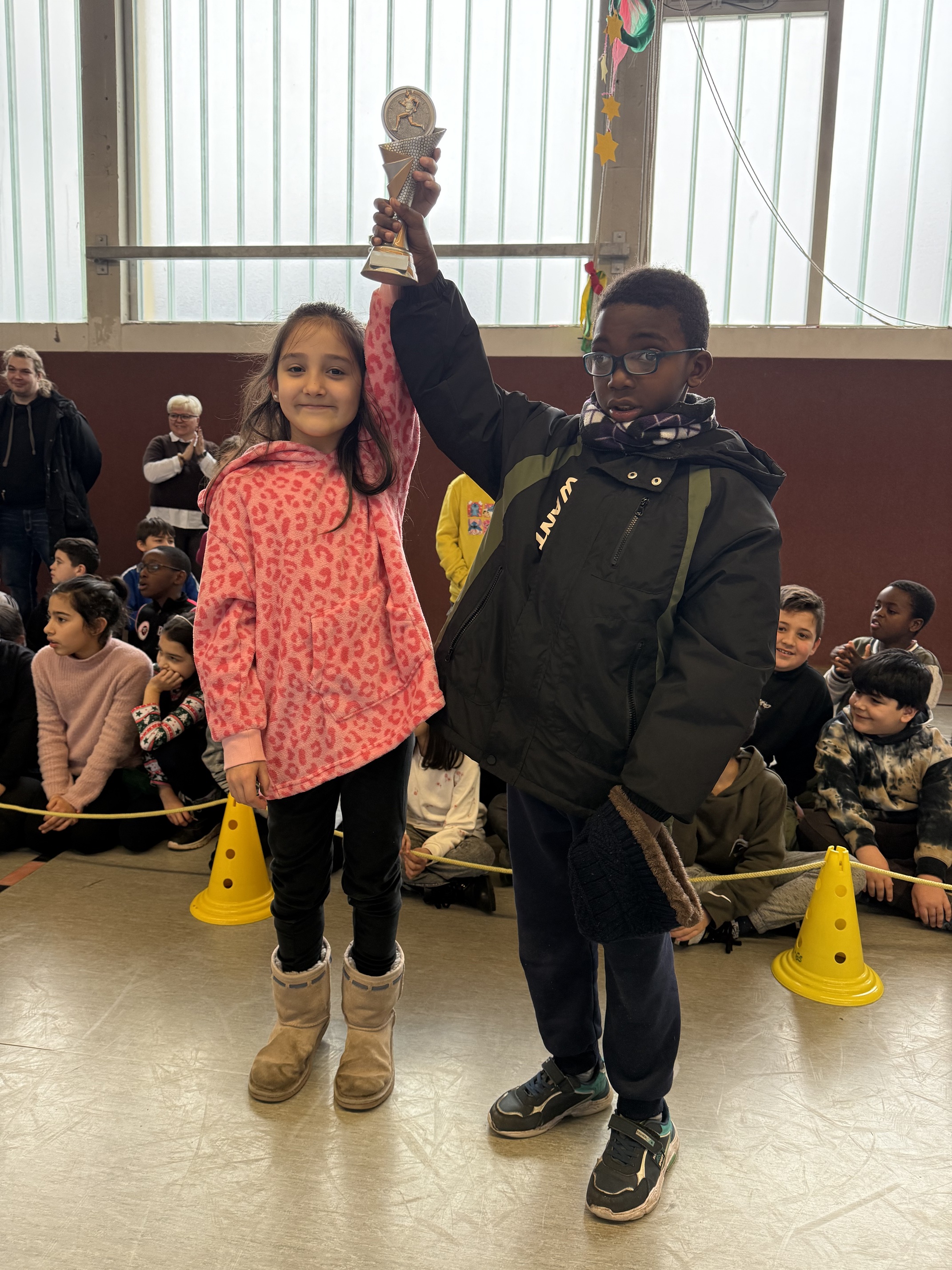Die Walk-To-School-Weeks haben an der Gilden-Europa-Grundschule in Huckarde eine lange Tradition. Bedingt durch die Sanierungs- und Sicherungsarbeiten zur Abstützung des Gebäudes sowie die daraus resultierende Auslagerung von vier Klassen ans Bert-Brecht-Gymnasium in Kirchlinde musste dieser Wettbewerb an der zertifizierten Grundschule jedoch im vergangenen Schuljahr pausieren. Wieder vereint unter einem Dach konnten nun von Oktober bis Dezember alle Jahrgänge mit den gleichen Chancen in die Challenge starten. Welche Klasse läuft am häufigsten zur Schule und lässt das Elterntaxi zu Hause stehen? Wer schult seine Selbstständigkeit und verbessert nebenbei seine körperliche Fitness? Wer hilft, den Schulweg und die Parksituation durch weniger Autos übersichtlicher und somit sicherer zu machen? Und nicht zuletzt: Wer minimiert seinen ökologischen Fußabdruck und trägt somit zum Umweltschutz bei? Im Laufe des Wettbewerbs waren alle eifrig dabei. Ein Kopf-an-Kopf-Rennen lieferten sich die Klassen 3a und 3b. Letztlich gewann die Klasse 3b mit hauchdünnem Vorsprung und nahm durch ihre Klassensprecher strahlend den Wanderpokal im Rahmen einer Vollversammlung vor den Weihnachtsferien entgegen. Sieger waren aber eigentlich alle fleißigen Läufer und das umweltbewusste Fitnessprogramm wird hoffentlich auch ohne offiziellen Wettbewerb im neuen Jahr freiwillig fortgesetzt.